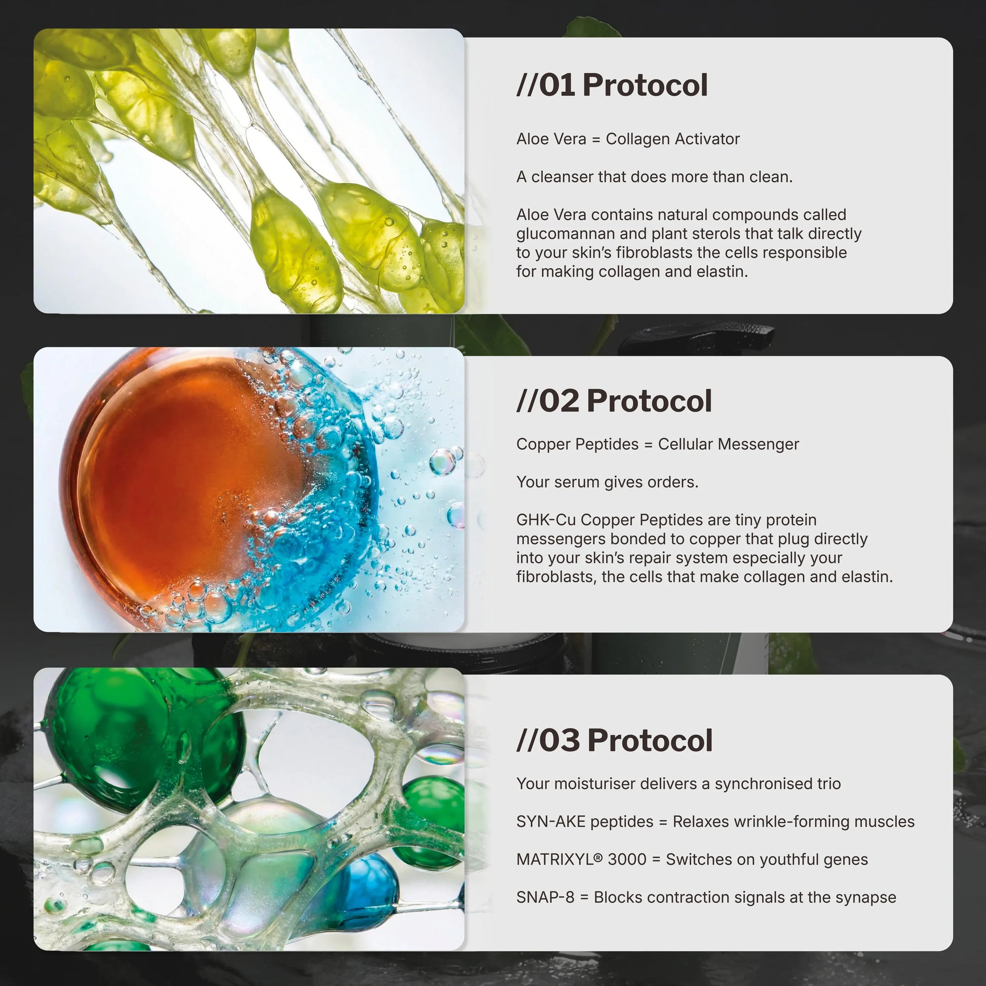 Supports production and release of collagen, thus increasing overall collagen content and it's degree of crosslinking. All while providing anti-inflammation support.